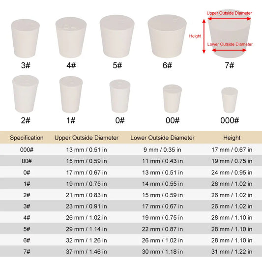 Rubber Stopper Set, Conical Solid, 22 Pack