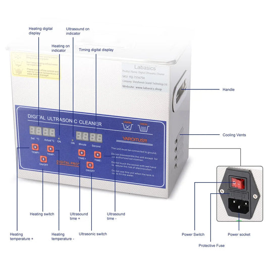 Ultrasonic Cleaner, Digital Display Timer and Heat Control, 3.2/6.5/10 L