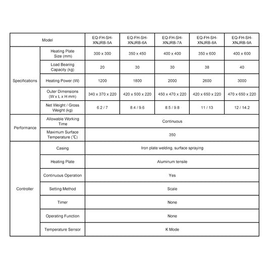 Aluminum Heating Plate with Knob Control, Infinitely Adjustable, Max Temp 350°C