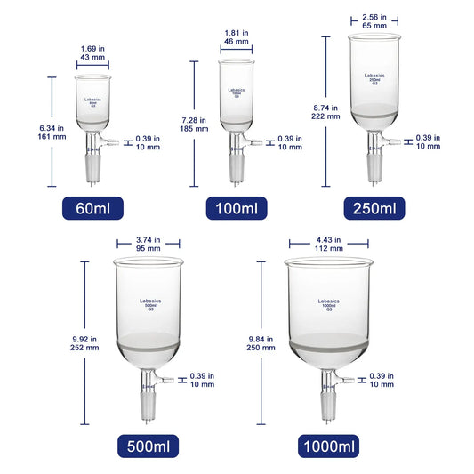 Buchner Filtering Funnel with Medium Frit (40-80 um), 24/40 Joint and Hose Connection, 60-1000 ml