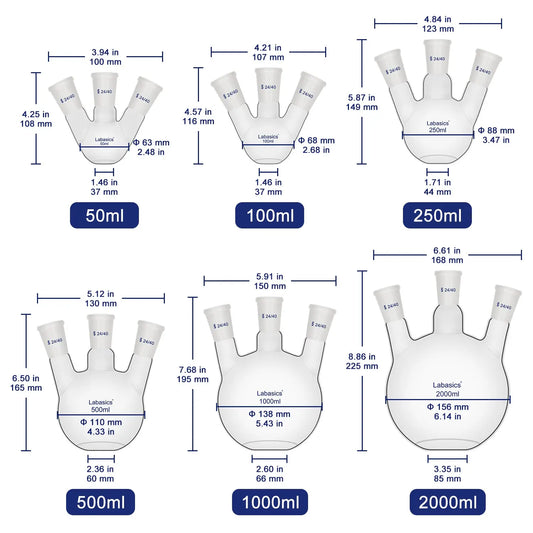 3 Neck Flat Bottom Flask, 24/40 Standard Joint, 50-2000mL