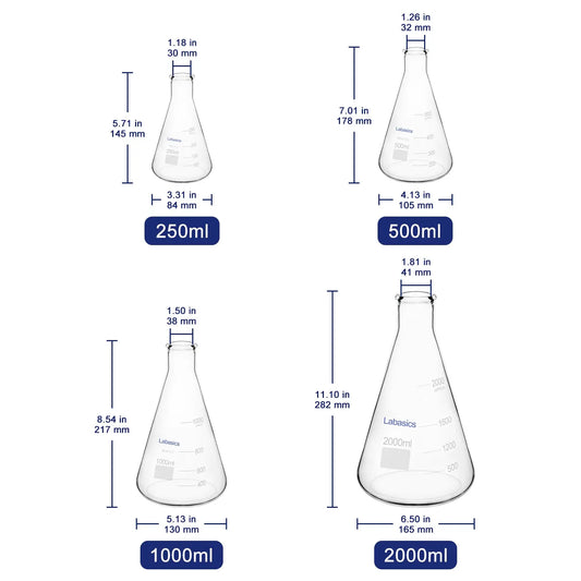 Glass Erlenmeyer Flask, 24/40 Standard Taper Outer Joint, 100-1000 mL