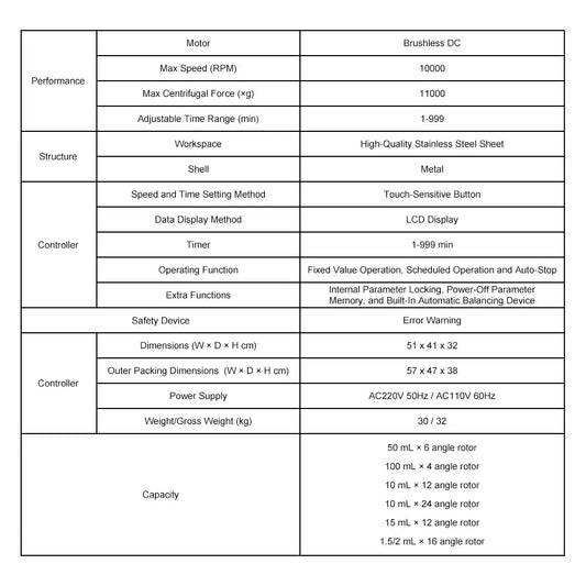 High-Speed Digital Centrifuge, Max 10000 RPM / 11000×g, Angle Rotor, Adjustable Speed & Time
