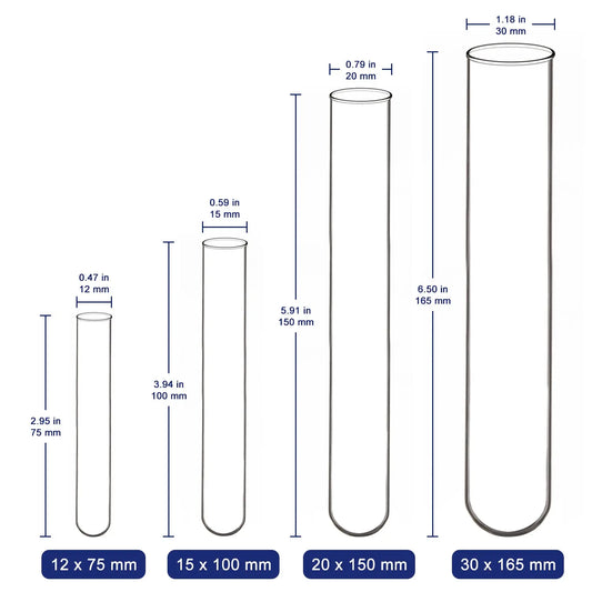 Test Tubes, Round Bottom, 12-30 mm OD, 75-165 mm Length
