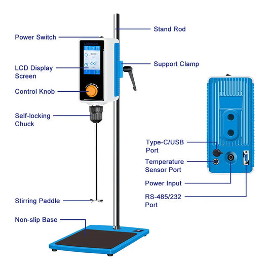 Overhead Stirrer with LCD Display, 30-2200 RPM, 20-100L Mixer