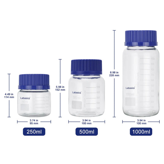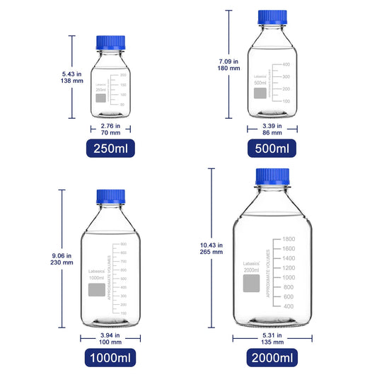 Transparent Media Storage Bottle, Borosilicate Glass, 250-2000 ml