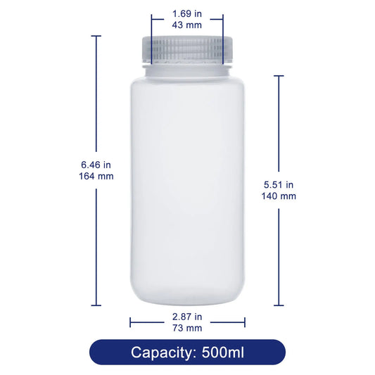 Transparent Media Storage Bottles with Screw Cap, Polypropylene, 500-1000 ml