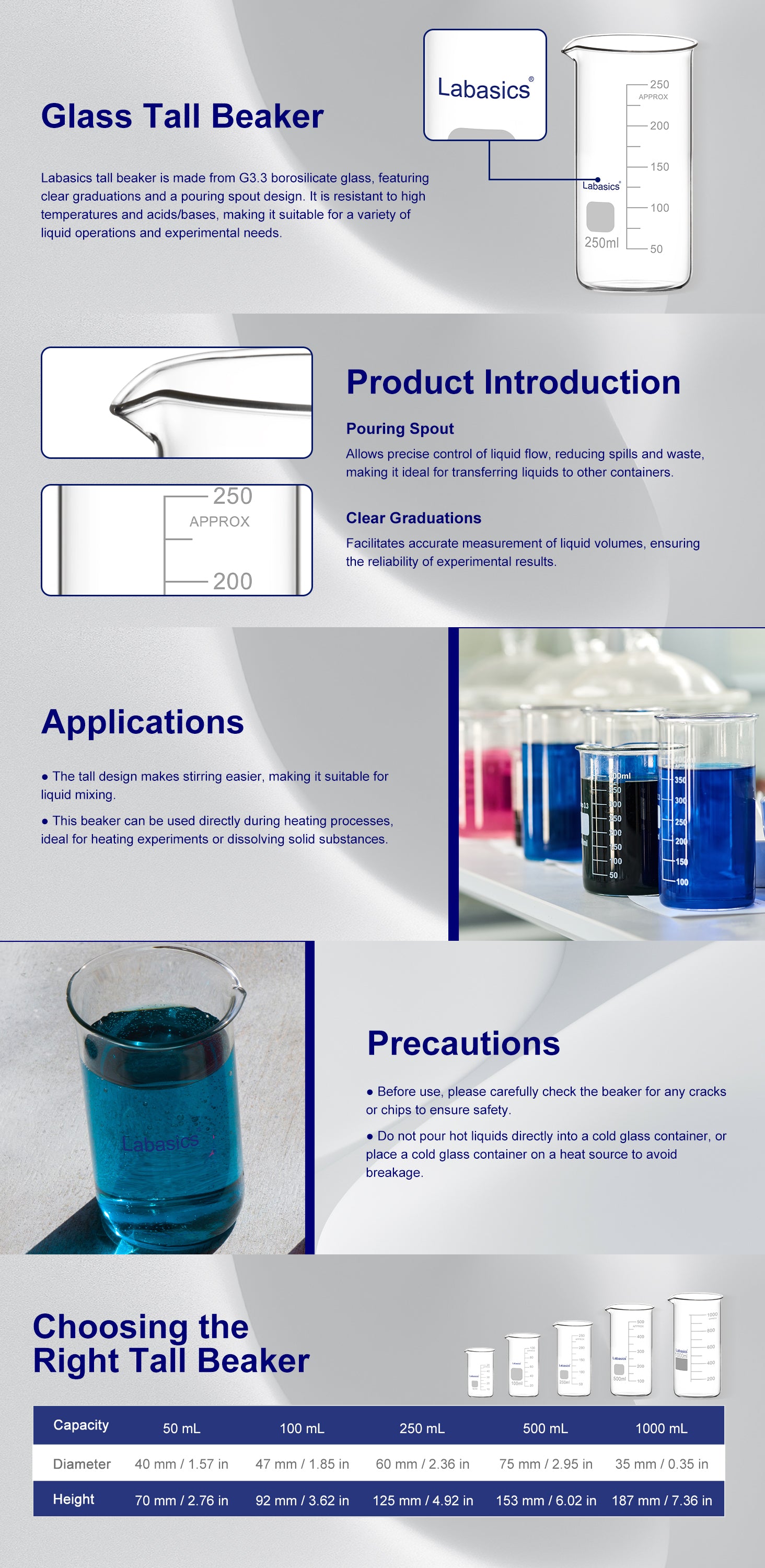 - Versatile Use: Available in 50 ml, 100 ml 250 ml and 500 ml size, this beaker offers easy liquid measurement and transfer with its clear scale and convenient pouring spout