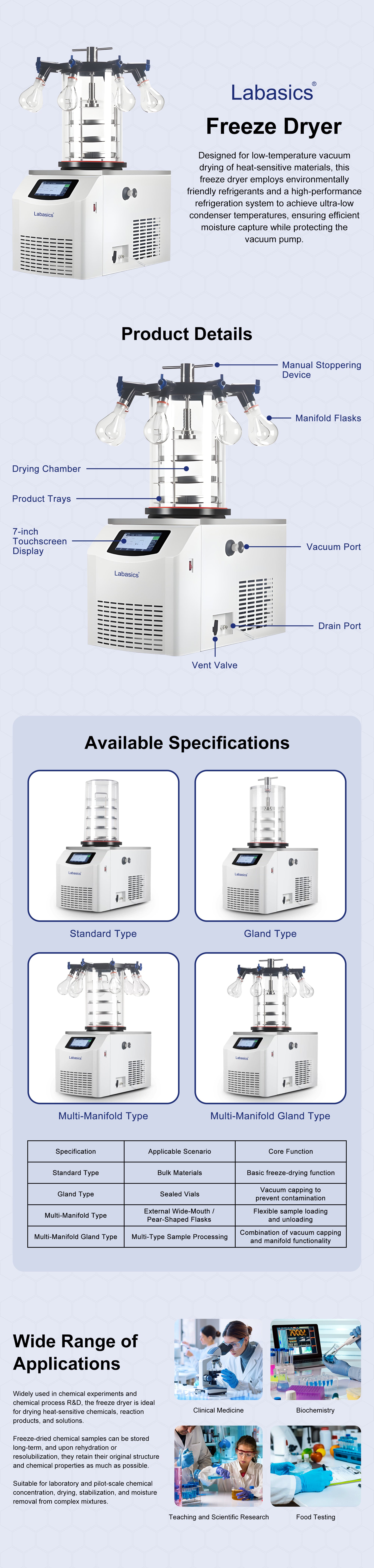 - Principle & Sample Preservation: operates on low-temperature pre-freezing and vacuum sublimation, maximizing preservation of sample structure and chemical stability during drying