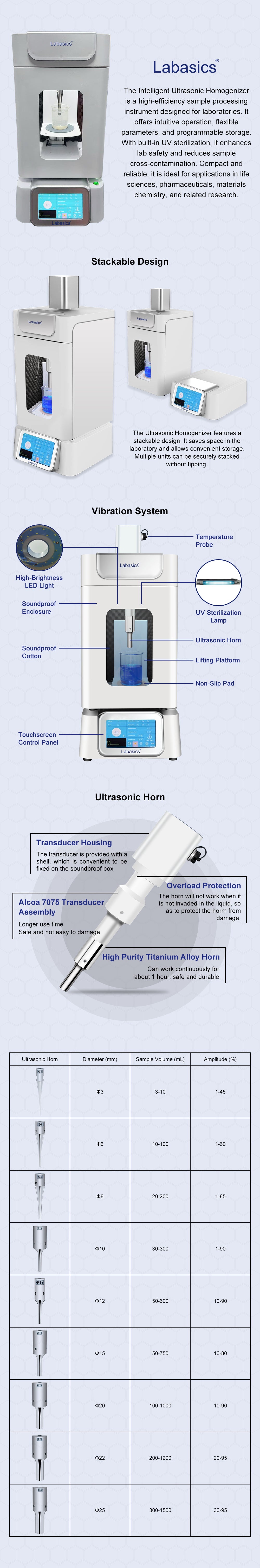 Intelligent Ultrasonic Homogenizer, 6.5-1800W Power, 0.1-1500 ml Capacity, 7 in Touchscreen